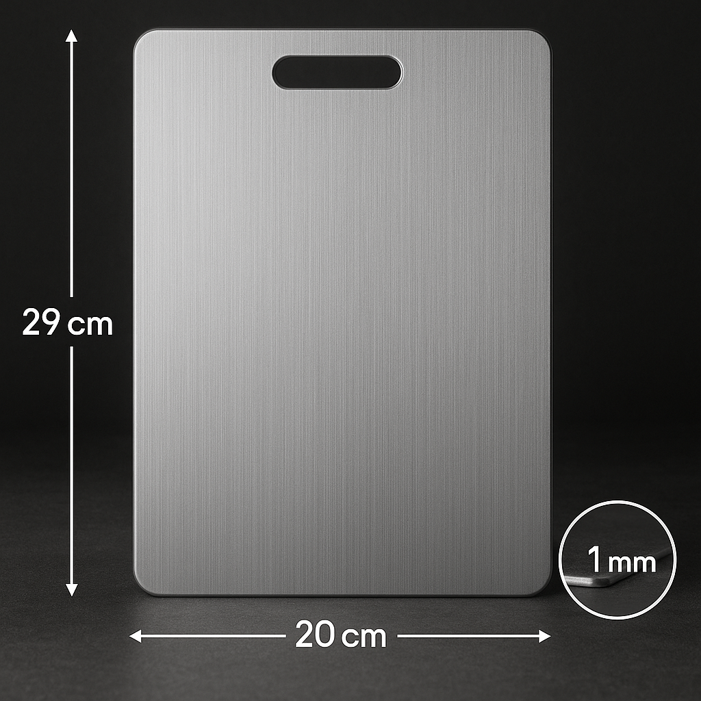 La tabla DURINOX® está fabricada 100% en acero inoxidable, lo que garantiza higiene, resistencia y una estética moderna para cualquier cocina. Su superficie evita la acumulación de olores, es fácil de lavar y está lista para todo tipo de alimentos.